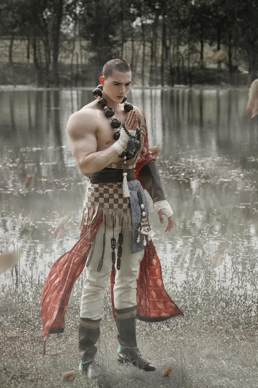 這位看起來法力無邊的敦煌菩薩,其實是名叫「肥牛文wen」的專業coser及模特,年紀20出頭的他,在將照片上傳到社群後,也在網上引起了一波熱烈討論,紛紛直呼:「感謝下凡普渡眾生!」,還有人搞笑表示,難怪妖怪們都想吃「唐僧肉」,也因為他長相斯文、體格卻相當魁武,還被形容是「唐長老的面容、魯智深的身材。」